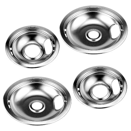 These chrome-finished drip pans provide a universal fit for Whirlpool and Roper electric ranges, protecting your stovetop from spills while giving your kitchen a clean, polished look.